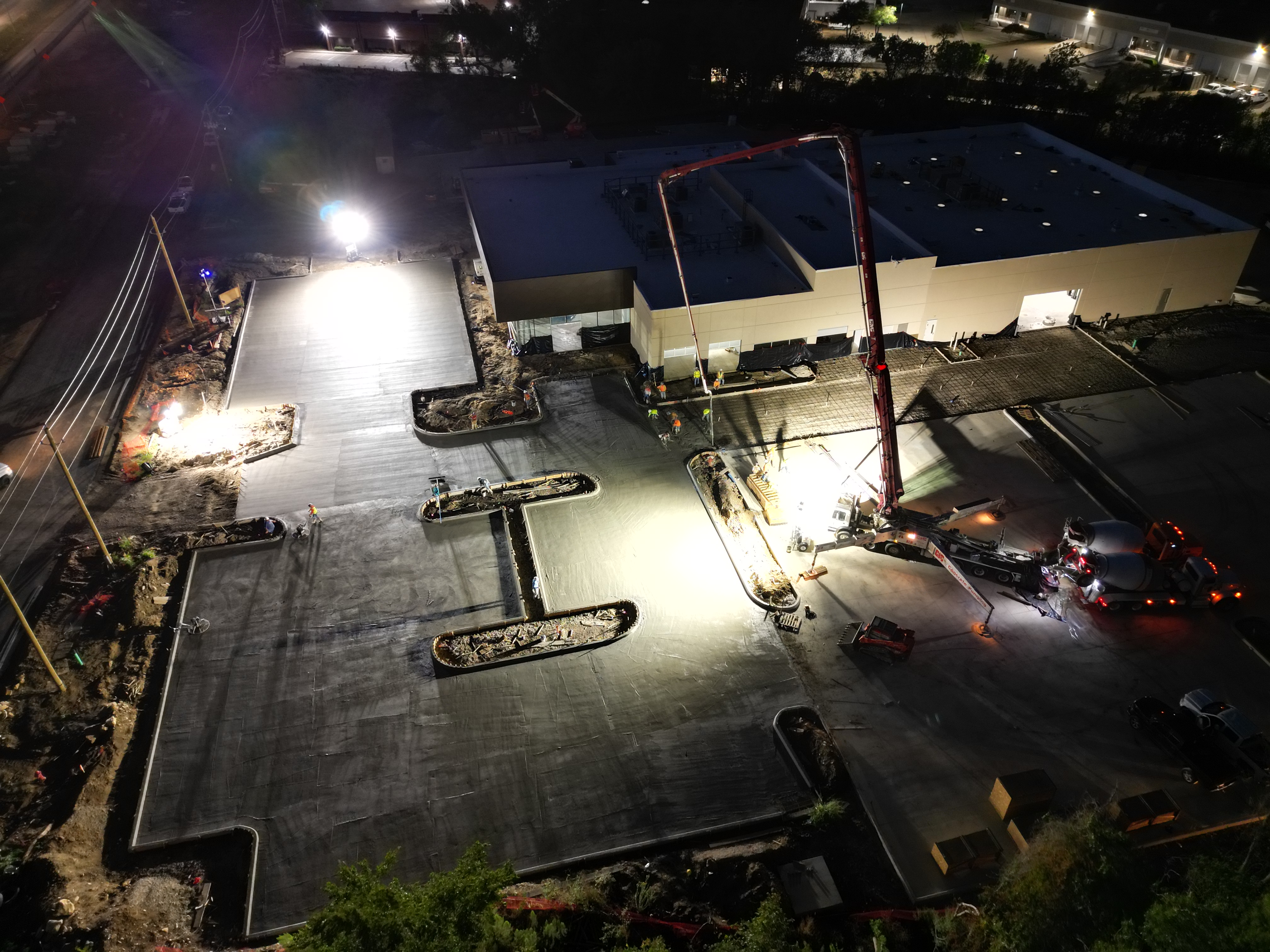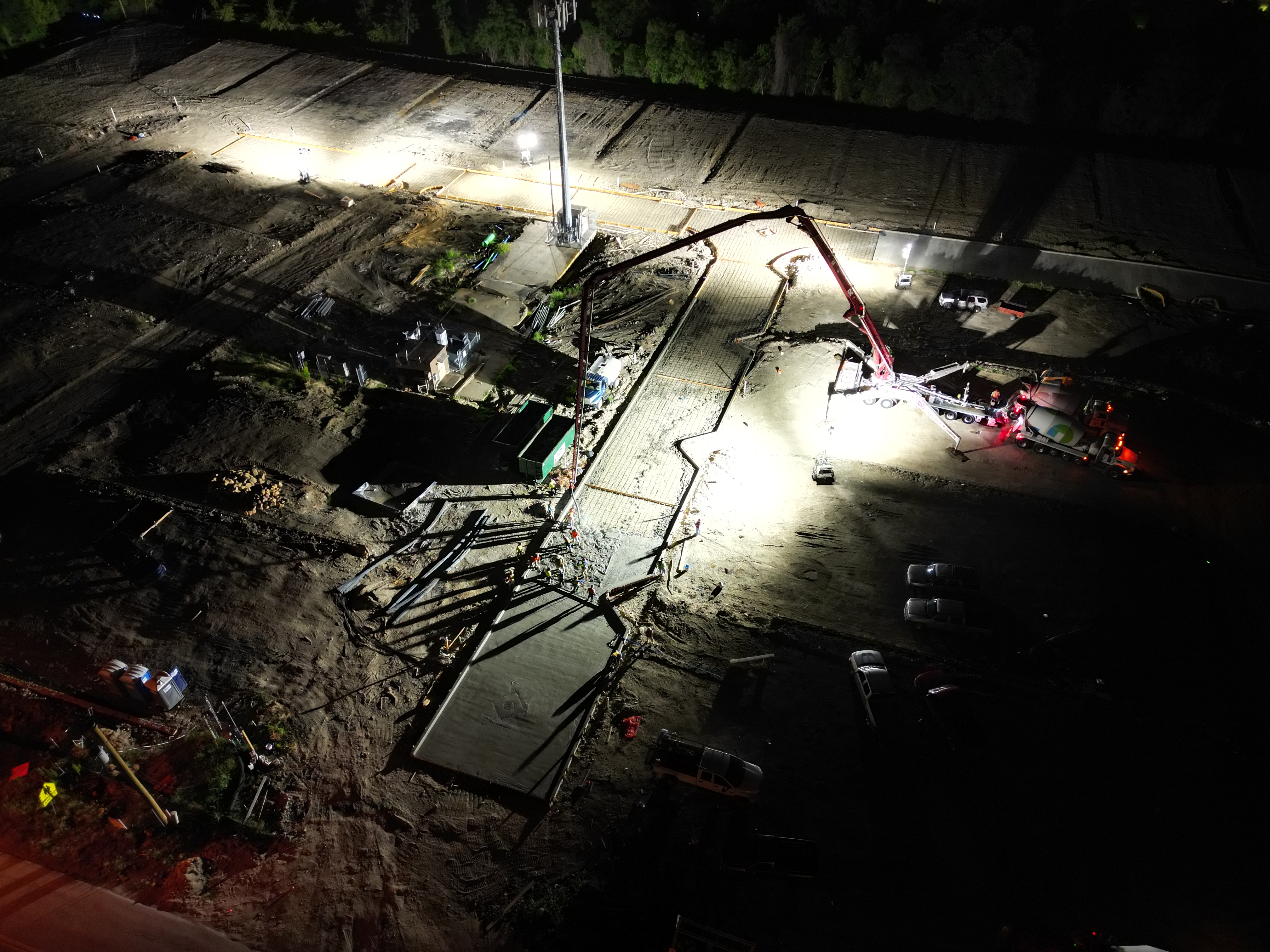 This project shows an active concrete pour for a new parking lot section. We fully prepped the area with grading, formwork, and a reinforced rebar grid to ensure structural strength. Crews are using a concrete pump truck to place the concrete efficiently across the site, while workers spread, level, and finish the surface.